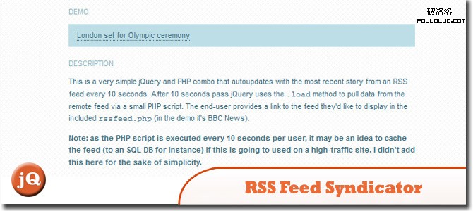 14. jQuery and PHP RSS Feed Syndicator 此插件可以高效、快速的為用戶訂閱的RSS內容進行更新。