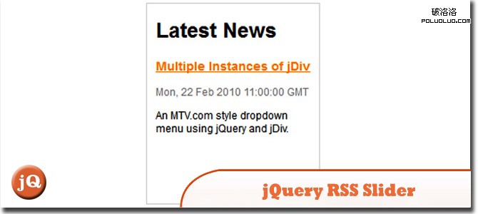 15. jQuery RSS Slider 此插件運用jFeed和jQuery Flips設計了滾動的閱讀頁面,可以滑動顯示最新的前三條訊息。