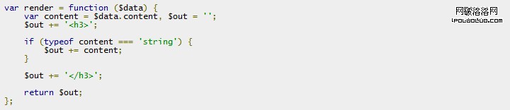 在上面 render 方法中,模板變量賦值采用了 with 語句,字符串拼接采用數組的 push 方法以提升在 IE6、7 下的性能,jQuery 作者 john 開發的微型模板引擎 tmpl 是這種方式的典型代表,參見: http://ejohn.org/blog/javascript-micro-templating/