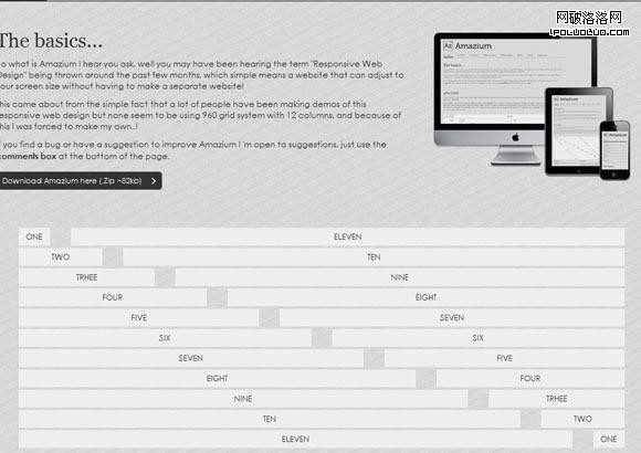 Amazium 是一個基於 960 網格系統的自適應 CSS 框架,能夠幫助你構建自適應的網頁布局。