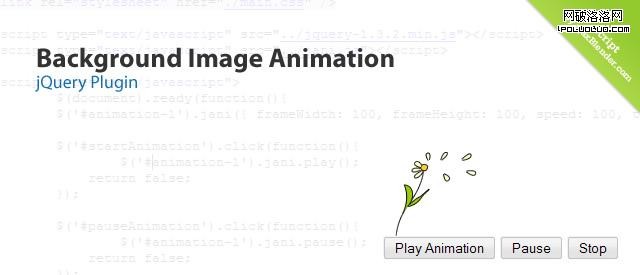 jAni是一個可以動畫顯示背景圖片的jQuery插件。這個插件基本上是GIF動畫的一個替代品,但是他有他的好處。所有浏覽器都支持GIF形式的動畫格式,而且也不需要額外的javaScript代碼和標記。但是不好的一點是,GIF格式的圖片只有256色。而且你不能控制圖片的顯示。這個插件通過載入垂直的GIF幀,然後改變容器的background-postion來顯示動畫,這樣你就可以自由控制了。