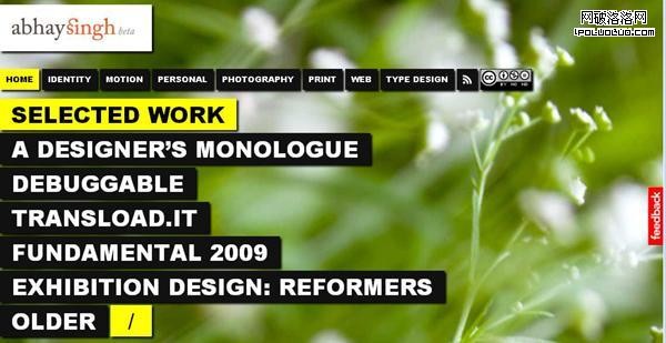Abhay Singh網站最大的特點是使用JQuery和Nice textual相結合。每次進入這個網站,他都能自動變換壁紙背景。