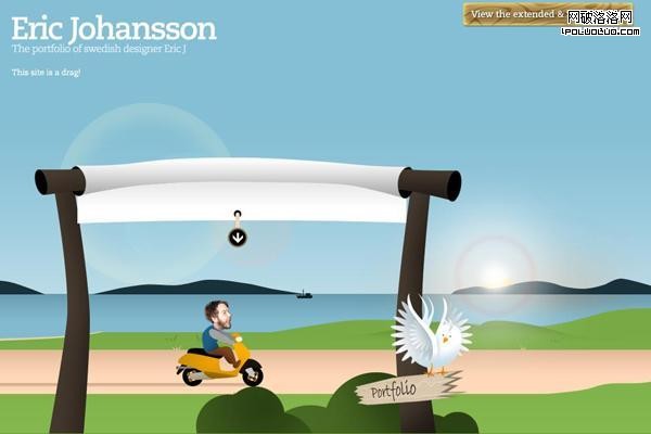 網頁上的滑動效果很出色,只需用鼠標點擊滑動條到到目的地的位置,摩托車就會自己動跟隨指示前進。值得一提的是背景圖片的選擇也很貼切主題。