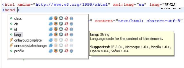 不僅僅是javascript,智能提示的范圍還包括DOM 1,2 for HTML: