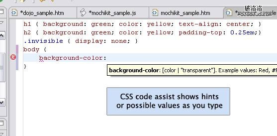 Aptana中的智能提示稱為 Code Assist,相當於VS中的Intellisense。