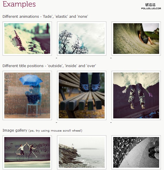 特點可以顯示圖像,HTML元素,SWF電影,內部框架和Ajax請求也通過設置,可定制和CSS組相關的項目,並增加了導航。如果鼠標滾輪插件已包含在頁面然後FancyBox將響應鼠標滾輪事件,以及通過使用插件支持花式過渡緩和添加項目下的一個不錯的放大投影