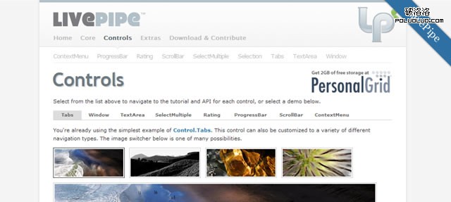 LivePipe UI 基於 Prototype Javascript 框架,包含了一整套經嚴格測試並高度可擴展的 UI 控件,擁有很好的文檔,在不支持 JavaScript 的環境中,可以無縫降級使用。包括 Tab, 窗體,文本框,多選框,評分控件,進度條,滾動條,右鍵菜單等多種控件。