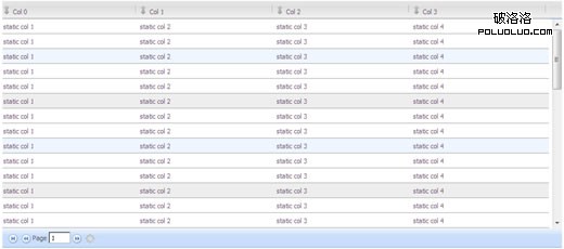 Flexigrid – Web 2.0 Javscript Grid for jQuery - 可變列寬,自動適應表頭寬度,可通過 Ajax 連接 XML 數據源,類似 Ext Grid,但基於 jQuery 因此更輕量小巧。