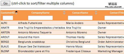 Ingrid, the jQuery Datagrid - 在 HTML 表格上加入列寬調整,分頁,排序,行列式樣等功能(演示)。