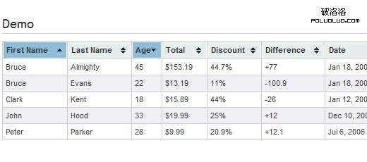 Tablesorter 2.0 - 將普通的,擁有 THEAD 和 TBODY 標簽的表格轉換為可排序表格,可以分析多種數據,支持多列排序。