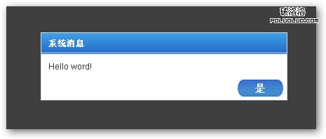 代碼很簡單吧?是不是找到了MessageBox中的感覺?但這個方法你無法控制標題的內容(其實可以通過改變配置參數來改變標題)和“是”那個按鈕的動作,點擊它就只是關閉窗口。