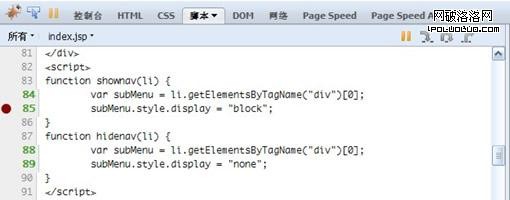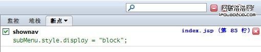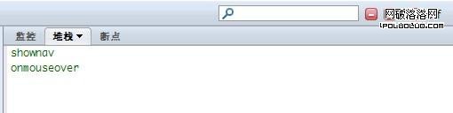 內容顯示的是當前中斷點程序的調用順序,在這個例子中是先觸發了 onmouseover,然後調用了shownav