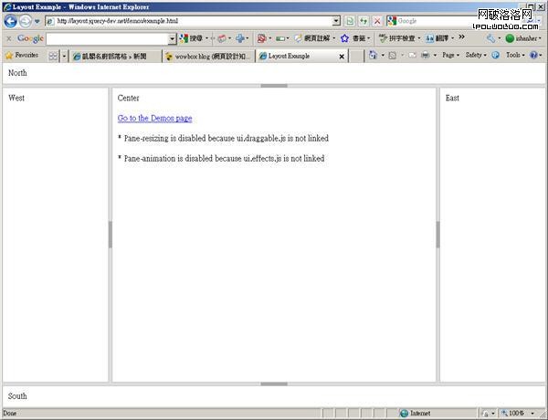 jQuery還是蠻夯的家伙。 CSS+DIV時代,要編排個頁框的版面還真不簡單,如果又是對為對於網頁的layout不是很在行的人,非常適合這套jQuery UI.Layout Plug-in。