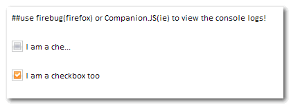 jCheckbox用於模擬checkbox的效果, 方便開發人員自定義外觀, 由於所有的屬性都綁定到目標checkbox, 所以不必擔心狀態保存或取值的問題...