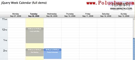 jQuery Week Calendar | 演示