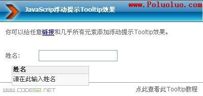 --你還可以根據自己的需求,修改浮動提示框的CSS代碼;通過對其進行美化以適應不同的場合。