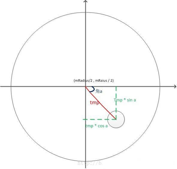 4.分象限的問題.看看代碼就知道了.主要是根據up時的觸摸點相對於圓點的X軸差值來計算.大於0就是一四象限.小於0就是二三象限.