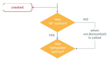 掛載到#app ,此處看一下尤大大給的生命周期圖,以下的意思是,假如new vue 的時候,有顯示的 el 屬性