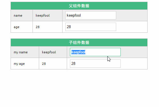 我們將子組件模板和頁面HTML稍作更改: