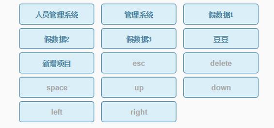 全部的按鍵別名:enter 、tab 、delete、 esc 、space、 up 、down、 left 、right。