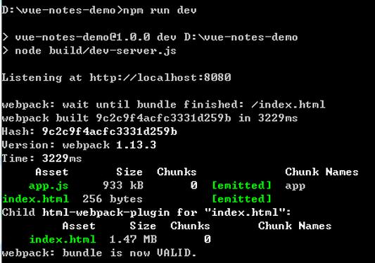 vue init webpack vue-notes-demo cd vue-notes-demo npm install // 安裝依賴包 npm run dev // 啟動服務