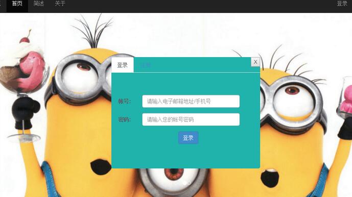 最近在寫一個系統的首頁,就是平常的一個頂部導航欄,上面有登錄和注冊兩個按鈕,點擊按鈕彈出相應的登錄或注冊框,為了方便交互,把登錄和注冊在一個選項卡裡放著,每次用戶不用回到頂部去點擊,只需要在當前框點擊就可切換,先看一下樣子吧,如圖所示: