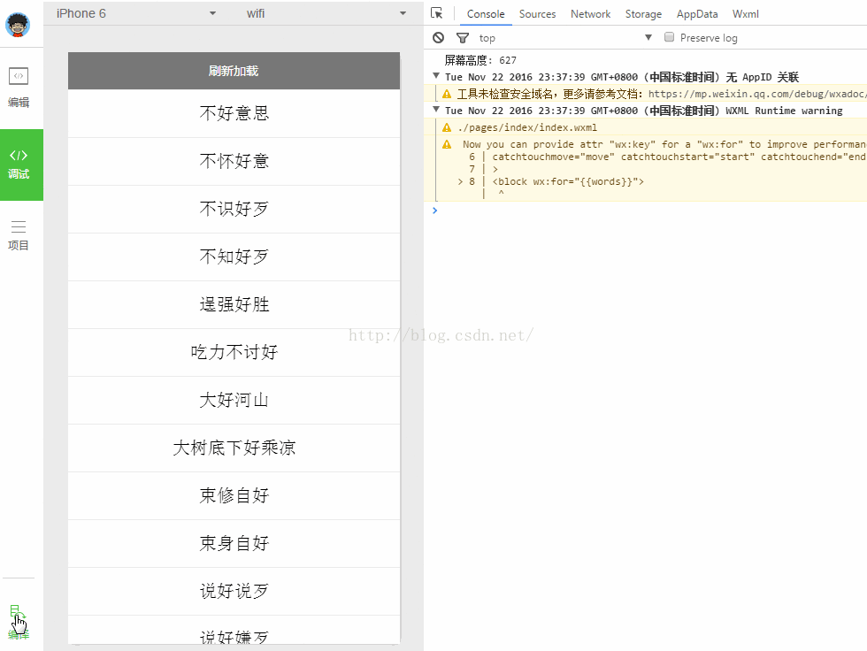 1.下拉刷新,在滑動到頂部時,bindscrolltoupper被調用,根據自己的業務邏輯請求即可.我的demo只是隨機換了個關鍵字.