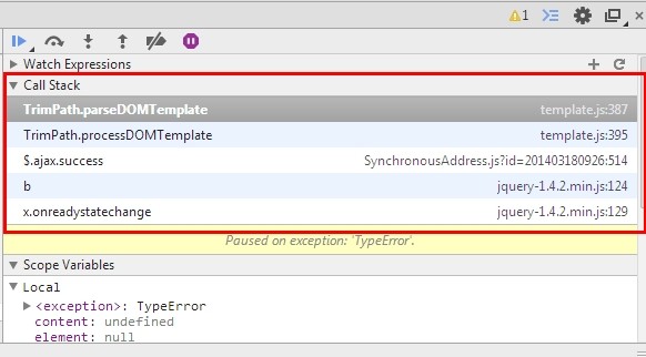 今天才知道,唉,原來google浏覽器也有錯誤調用堆棧: