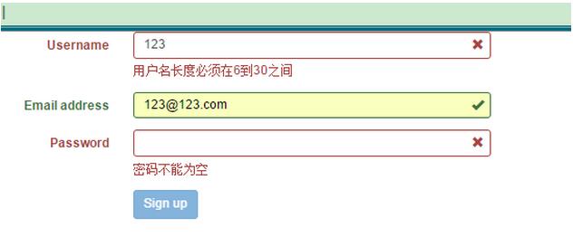 至此只要運行和看了例子,就能進行大部分的驗證了,是不是很簡單?只要寫相應的鍵值對即可,再也自己什麼都寫了。下面進一步的使用,進行用戶的注冊,