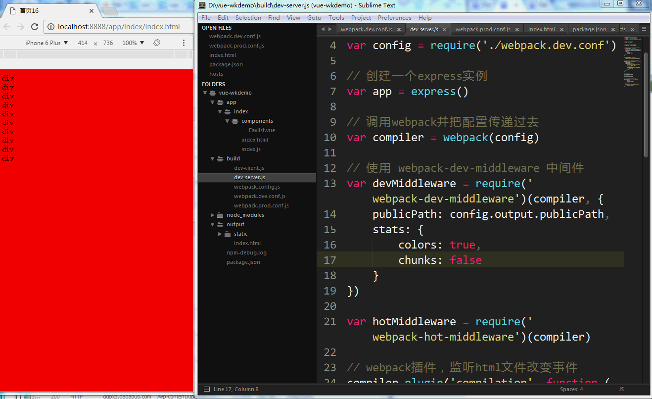 在build目錄中創建一個dev-server.js文件,並寫入內容: