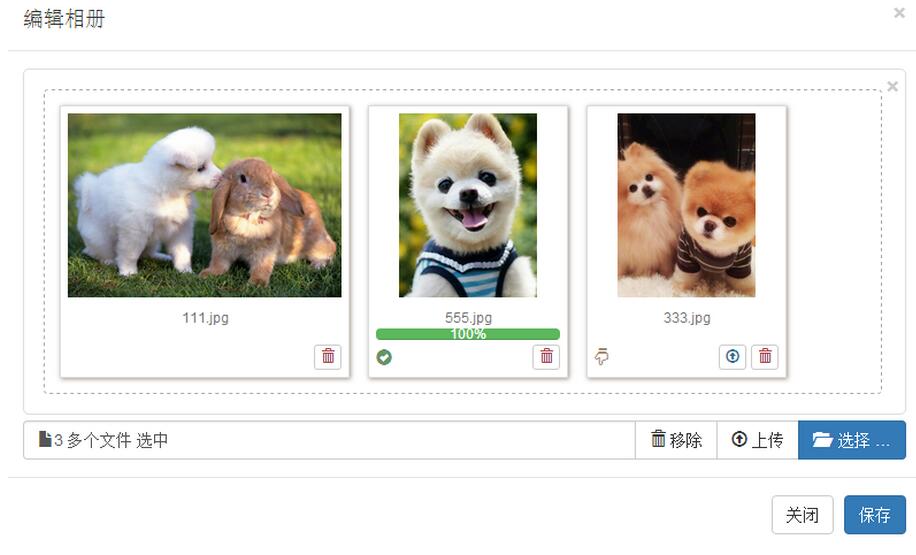因為FileInput插件在選擇文件後,不管有沒有上傳,都會保留文件在file域中,因此再點擊時會顯示上一次選擇的文件,不符合多相冊管理的需求,原本以為clear操作就可以清空file域(官方文檔這麼說的),但實際操作發現並沒有清空,因此才調用clear,destory後再重新初始化文件上傳控件。(這一點不太確定,希望有大神可以指點)