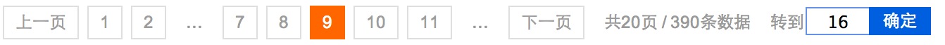 2、大於9頁,1、2頁顯示,中間頁碼當前頁為中心,前後各留兩個頁碼