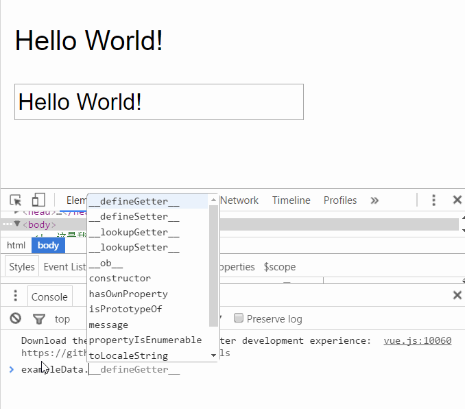 反過來,如果改變message的值,文本框的值也會被更新,我們可以在Chrome控制台進行嘗試。