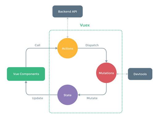 客戶端所有組件都是在 action 中完成對流入數據的處理(如異步請求等),然後通過 action 觸發 mutation 修改 state ,後由 state 經過 getter 分發給各組件,滿足“單項數據流”的特點,同時也符合官方推薦的做法: