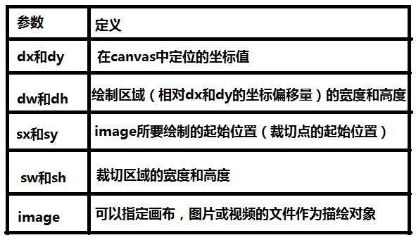 drawImage(image,sx,sy,sw,sh,dx,dy,dw,dh)//裁切後繪制圖像