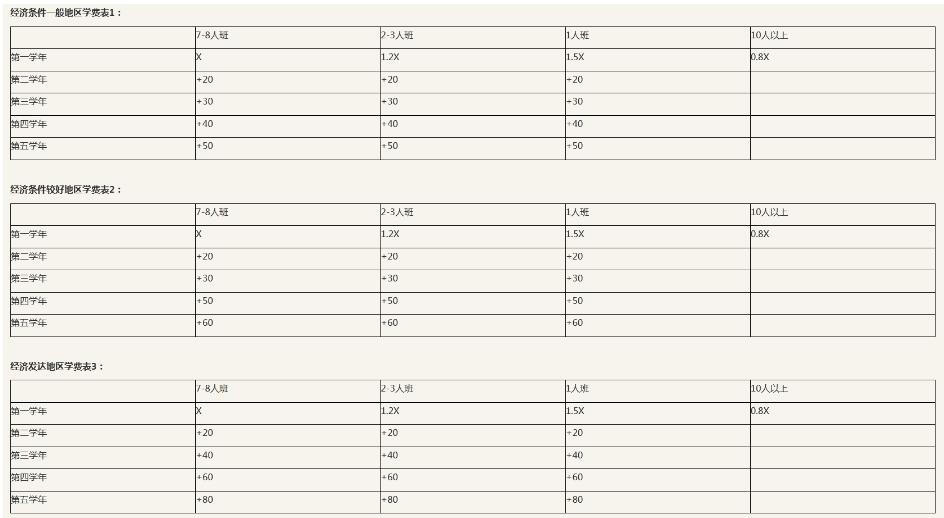 <th colspan="5" class="active">經濟發達地區學費表</th>