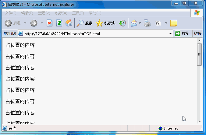 下面具體說說如何利用JavaScript中的滾動事件window.onscroll實現這個回到頂部組件。具體效果如下: