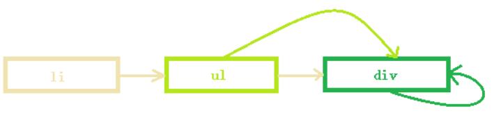 假設我們有三個對象:li、ul、div,三者關系圖如下: