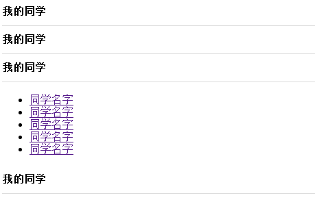 <ul> <li><a href="">同學名字</a></li> <li><a href="">同學名字</a></li> <li><a href="">同學名字</a></li> <li><a href="">同學名字</a></li> <li><a href="">同學名字</a></li> </ul> <label for="list2">我的同學</label>