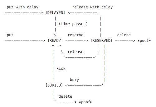 要解決這個問題,需要先理解一個消息的生命周期:當一個消息被放入隊列的時候,它就進入了 READY 狀態,與此同時,它會關聯一個 TTR(time to run) 計時器,表示此消息允許運行的時間,當此消息被消費時,它就進入了 RESERVED 狀態,消費完後,此消息就會被刪除,如果消費的時間過長,比 TTR 還長,那麼系統會認為認為此消費者已經掛了,進而會把消息從 RESERVED 狀態退回到 READY 狀態,交給另一個消費者重新處理。於是乎同一個消息可能會被多個消費者處理,第一個處理完的消費者可以正常的刪除消息,而其余的消費者在刪除消息的時候就會報無法刪除的錯誤。