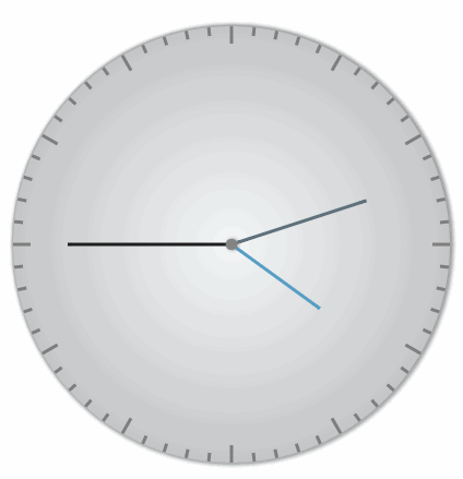 這個鐘重點不在怎麼畫,在三角函數,三角函數的使用與角度息息相關,Math.PI是π,Math.sin(),Math.cos()它們都是接受弧度的,所以要