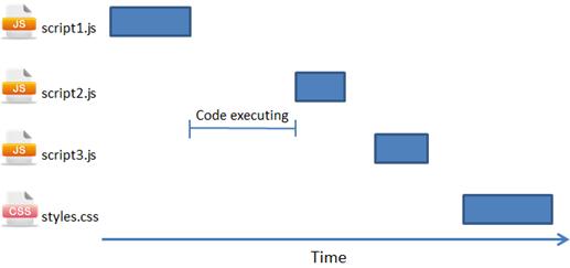 圖 1 JavaScript 文件的加載和執行阻塞其他文件的下載