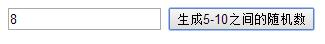 <input type="text" id="num"> <input type="button" onClick="setRnd()" value="生成5-10之間的隨機數">
