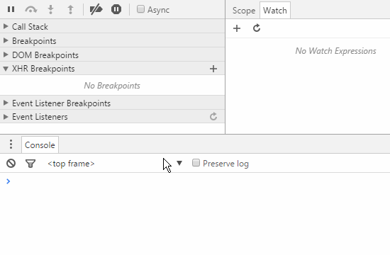 XHR斷點的強大之處是可以自定義斷點規則,這就意味著我們可以針對某一批、某一個,乃至所有異步請求進行斷點設置,非常強大。但是,似乎這個功能在日常開發中用得並不多,至少我用得不多。想想原因大概有兩點:其一,這類型的斷點調試需求在日常業務中本身涉及不多;其二,現階段的前端開發大多基於JS框架進行,最基本的jQuery也已經對Ajax進行了良好封裝,極少有人自己封裝Ajax方法,而項目為了減少代碼體積,通常選擇壓縮後的代碼庫,使得XHR斷點跟蹤相對不那麼容易了。