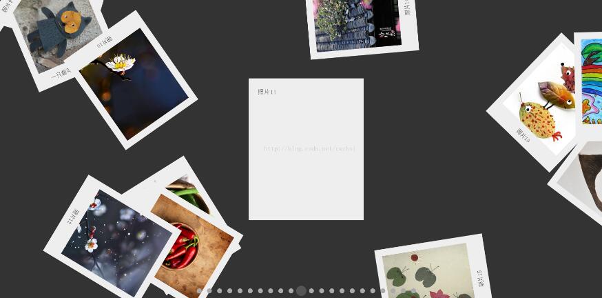 •某個控制按鈕被點擊時,對應的圖片顯示到正中間,控制按鈕進行相應的樣式切換。當連續點擊某個控制按鈕時,圖片伴隨著按鈕的點擊進行正反面切換