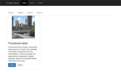 每個在選項卡面板中的網格項目都是用 Bootstrap的網格系統 和 縮略圖組件 建立的。這裡是一個代碼片段來解釋它的結構: