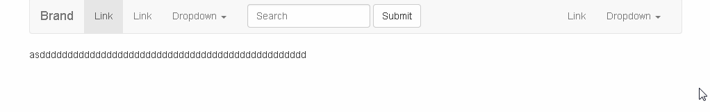 <!DOCTYPE html PUBLIC "-//W3C//DTD XHTML 1.0 Transitional//EN" "http://www.w3.org/TR/xhtml1/DTD/xhtml1-transitional.dtd"> <html xmlns="http://www.w3.org/1999/xhtml"> <head> <meta http-equiv="Content-Type" content="text/html; charset=utf-8" /> <title>navbar</title> <meta name="viewport" content="width=device-width,initial-scale=1.0,user-scalable=no"> <link href="css/bootstrap.css" rel="stylesheet" media="screen"> <script type="text/javascript" src="js/jquery-1.11.1.js"></script> <script type="text/javascript" src="js/bootstrap.js"></script> </head> <body> <div class="container"> <nav class="navbar navbar-default" role="navigation"> <div class="container-fluid"> <div class="navbar-header"> <button type="button" class="navbar-toggle collapsed" data-toggle="collapse" data-target="#bs-example-navbar-collapse-1"> <span class="sr-only">Toggle navigation</span> <span class="icon-bar"></span> <span class="icon-bar"></span> <span class="icon-bar"></span> </button> <a class="navbar-brand" href="#">Brand</a> </div> <div class="collapse navbar-collapse" id="bs-example-navbar-collapse-1"> <ul class="nav navbar-nav"> <li class="active"> <a href="#">Link</a> </li> <li> <a href="#">Link</a> </li> <li class="dropdown"> <a href="#" class="dropdown-toggle" data-toggle="dropdown">Dropdown <span class="caret"></span> </a> <ul class="dropdown-menu" role="menu"> <li> <a href="#">Action</a> </li> <li> <a href="#">Another action</a> </li> <li> <a href="#">Something else here</a> </li> <li class="divider"></li> <li> <a href="#">Separated link</a> </li> <li class="divider"></li> <li> <a href="#">One more separated link</a> </li> </ul> </li> </ul> <form class="navbar-form navbar-left" role="search"> <div class="form-group"> <input type="text" class="form-control" placeholder="Search"> </div> <button type="submit" class="btn btn-default"> Submit </button> </form> <ul class="nav navbar-nav navbar-right"> <li> <a href="#">Link</a> </li> <li class="dropdown"> <a href="#" class="dropdown-toggle" data-toggle="dropdown">Dropdown <span class="caret"></span> </a> <ul class="dropdown-menu" role="menu"> <li> <a href="#">Action</a> </li> <li> <a href="#">Another action</a> </li> <li> <a href="#">Something else here</a> </li> <li class="divider"></li> <li> <a href="#">Separated link</a> </li> </ul> </li> </ul> </div> </div> </nav> asdddddddddddddddddddddddddddddddddddddddddddddddd </div> </body> </html>