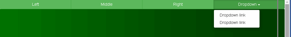 <!DOCTYPE html PUBLIC "-//W3C//DTD XHTML 1.0 Transitional//EN" "http://www.w3.org/TR/xhtml1/DTD/xhtml1-transitional.dtd"> <html xmlns="http://www.w3.org/1999/xhtml"> <head> <meta http-equiv="Content-Type" content="text/html; charset=utf-8" /> <title>按鈕組buttongroup</title> <meta name="viewport" content="width=device-width,initial-scale=1.0,user-scalable=no"> <link href="css/bootstrap.css" rel="stylesheet" media="screen"> <script type="text/javascript" src="js/jquery-1.11.1.js"></script> <script type="text/javascript" src="js/bootstrap.js"></script> </head> <body> <!--要求按鈕組鋪滿整個頁面--> <div class="btn-group btn-group-justified"> <div class="btn-group"> <!--不存在下拉菜單的按鈕這樣寫,為按鈕定義鏈接比較少見,請注意--> <a href="#" class="btn btn-success"> Left </a> </div> <div class="btn-group"> <button type="button" class="btn btn-success"> Middle </button> </div> <div class="btn-group"> <button type="button" class="btn btn-success"> Right </button> </div> <!--存在下拉菜單的按鈕這樣寫--> <div class="btn-group"> <button type="button" class="btn btn-success dropdown-toggle" data-toggle="dropdown"> Dropdown <span class="caret"></span> </button> <ul class="dropdown-menu" role="menu"> <li> <a href="#">Dropdown link</a> </li> <li> <a href="#">Dropdown link</a> </li> </ul> </div> </div> </body> </html>