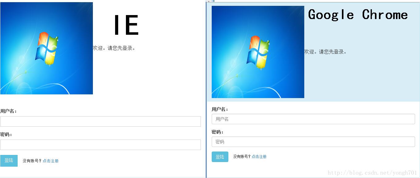 以下是IE與谷歌浏覽器對同一頁面的對比: