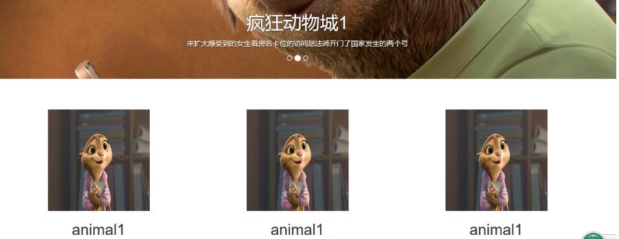 <div class="container" id="tag_container"> <div class="row"> <div class="col-md-4"> <img src="image/3.jpg" alt="animal1" width="200px" height="200px"> <h2>animal1</h2> <p>林卡酒店剛說風寒看到個後面發的搜房大機構老夫</p> <p><a href="#">click me</a></p> </div> <div class="col-md-4"> <img src="image/3.jpg" alt="animal1" width="200px" height="200px"> <h2>animal1</h2> <p>林卡酒店剛說風寒看到個後面發的搜房大機構老夫</p> <p><a href="#">click me</a></p> </div> <div class="col-md-4"> <img src="image/3.jpg" alt="animal1" width="200px" height="200px"> <h2>animal1</h2> <p>林卡酒店剛說風寒看到個後面發的搜房大機構老夫</p> <p><a href="#">click me</a></p> </div> </div> </div>